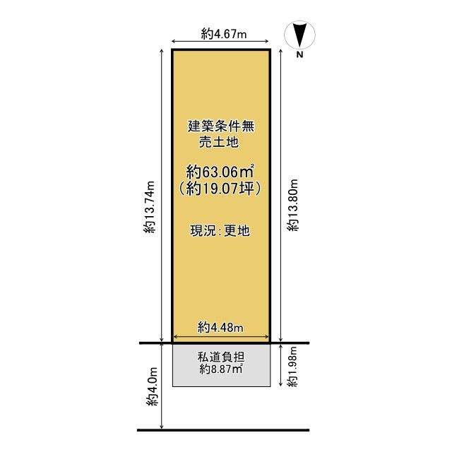 【外観】約19.07坪の建築条件無売土地! お好きなハウスメーカー・工務店で建築可能です。