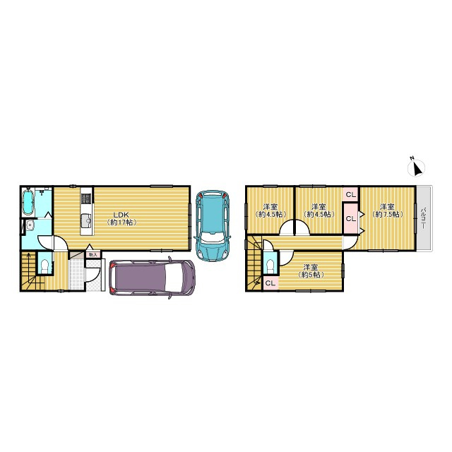 全居室フローリング 駐車2台可 システムキッチン バルコニー二ヶ所