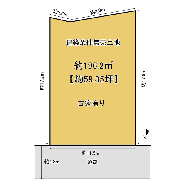 【前面道路含む現地写真】前道幅員は約4.3m。間口が広く、ゆったりとした敷地です。