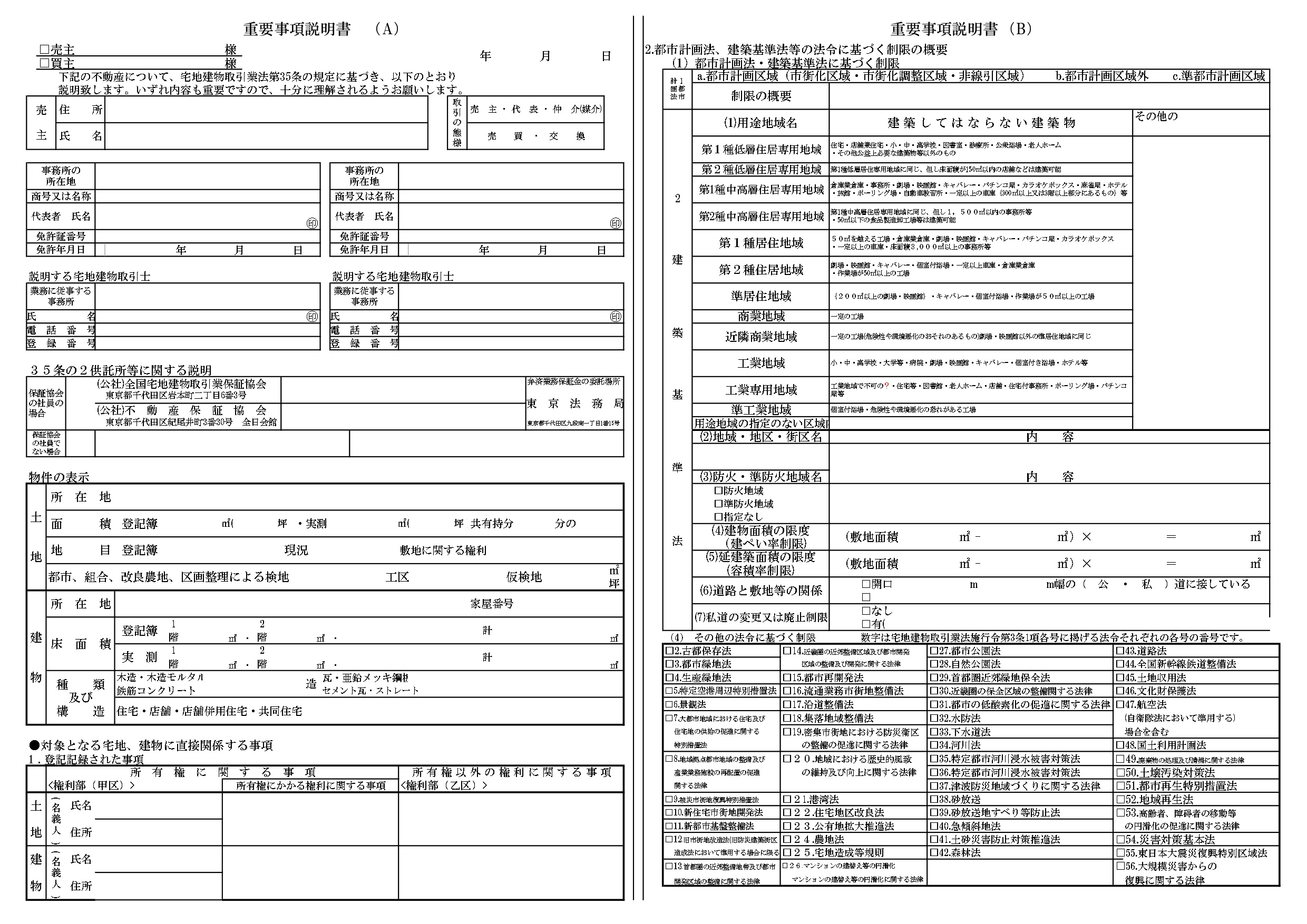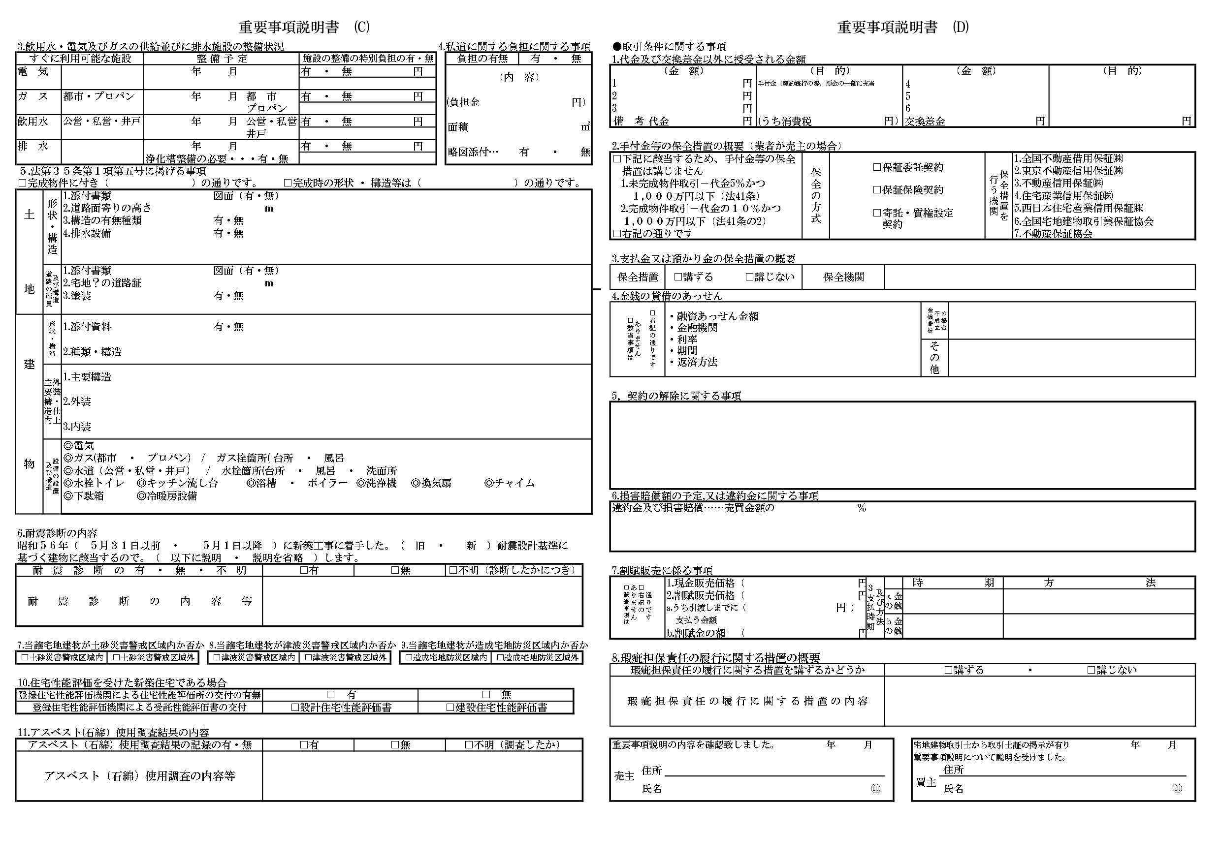 項目は売買・賃貸、土地・建物の別で多少変わりますが、共通して「契約する上で判断を左右し得る事項」を体系的に説明するという点は変わりません。